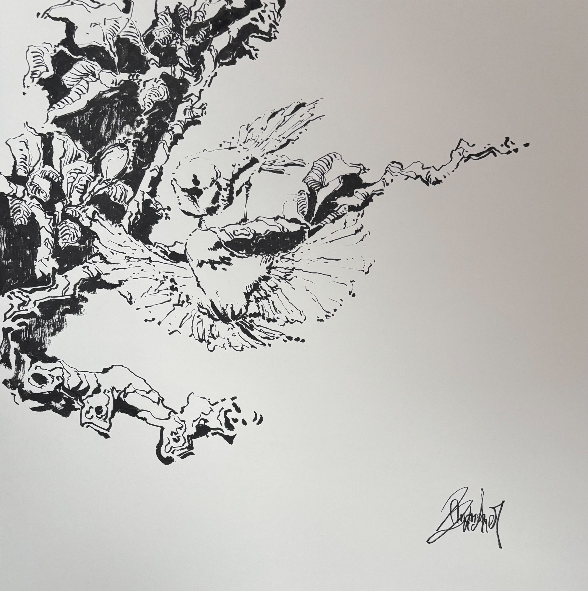 "Mit chinesischer Tusche zeichne ich den Kern eines Motivs oder Themas. Meine Skizzen sind dadurch offen, leicht, klar und pur.
